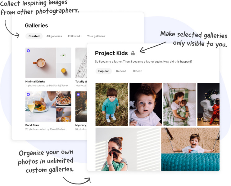 Use the galleries to organize your own images or collect inspiring images from other photographers.
